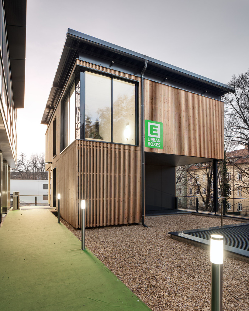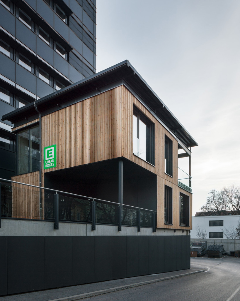 Nachhaltigkeit spielte also auch bei ihrer Variante der UrbanBoxes eine große Rolle. So entstanden hier UrbanBoxes am Niedrigenergiestandard mit Photovoltaik-Fassadenelementen.
