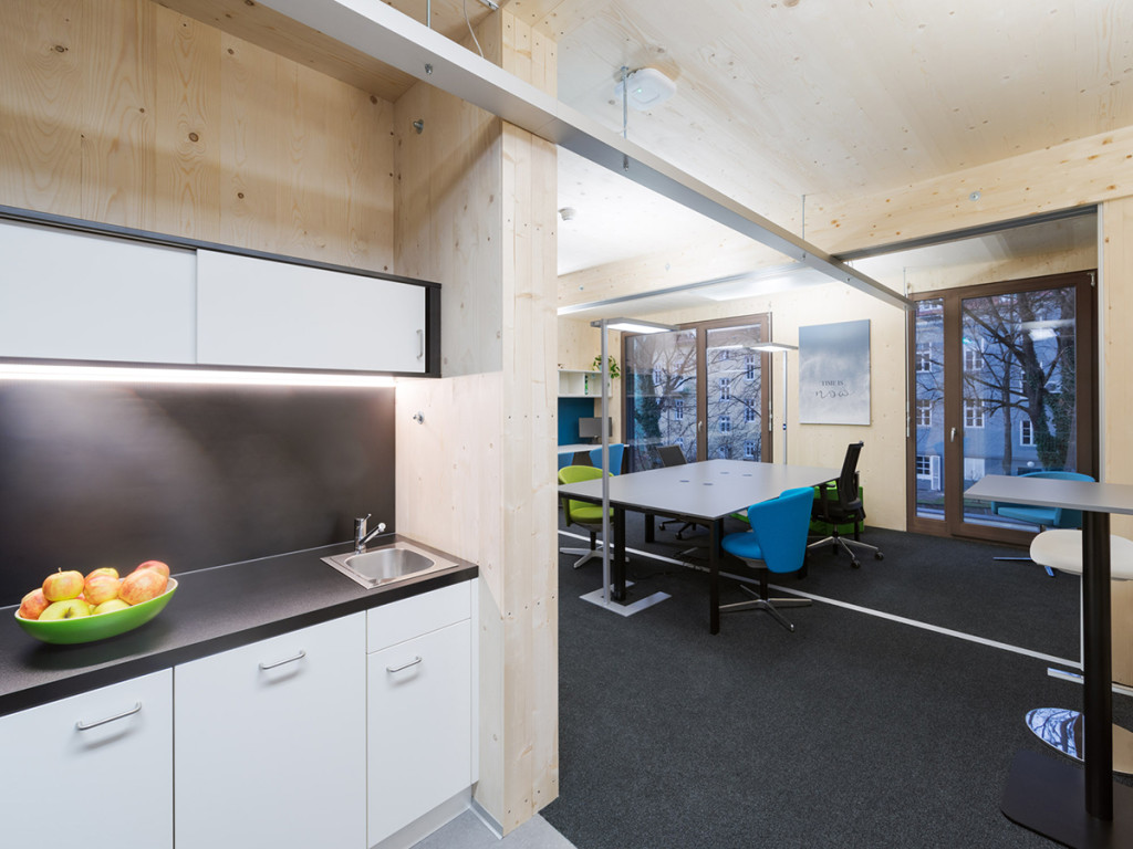 Die Büroflächen sind komplett ausgestattet und werden als Co-Working-Space extern vermietet.