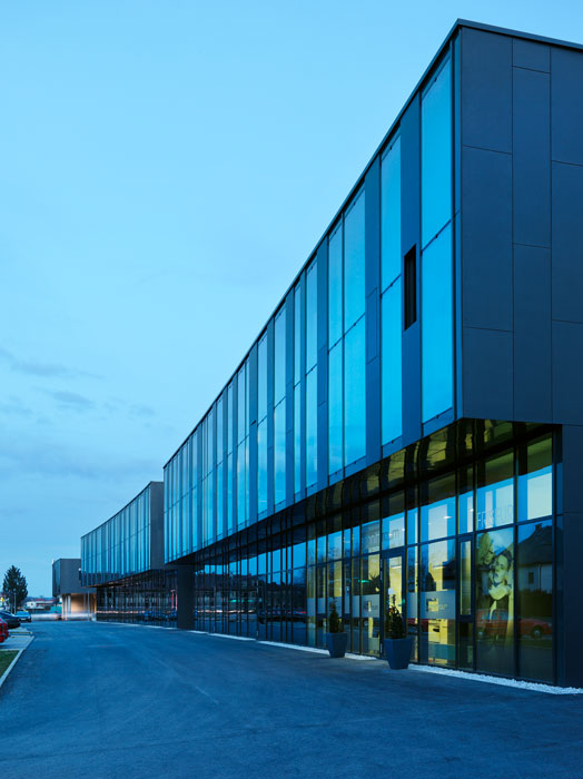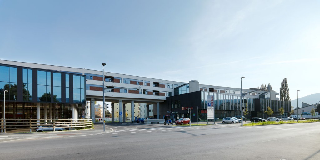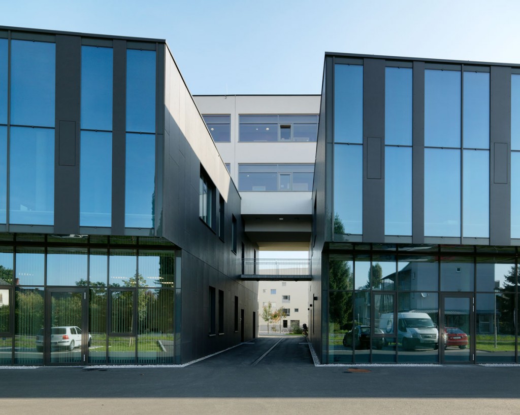 Entlang der Peter Roseggerstraße bilden zweigeschossige Büro – und Geschäftsbauten eine ruhig gegliederte Straßenfront. Die Geschosse darüber sind zurückgestellt und fassen die Straßenfront zusammen. Der kleine Platz mit der Bank und Geschäften markiert den Siedlungseingang und akzentuiert die Anbindung an den neuen Stadtteil Reininghaus. Der gesamte Wohnbereich dahinter ist verkehrsfrei gehalten.